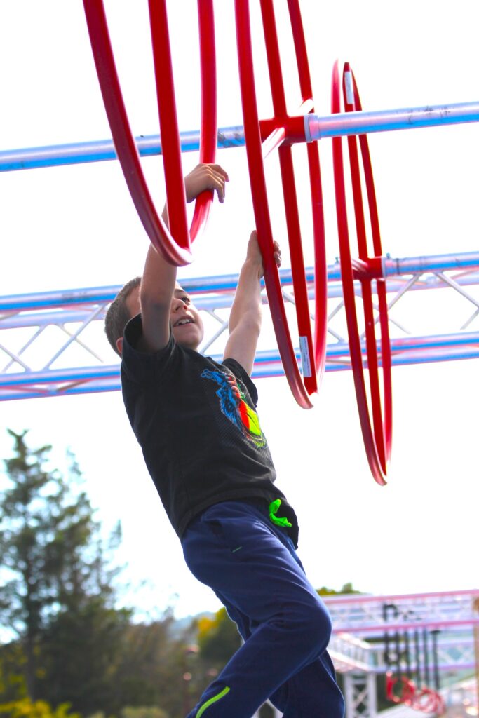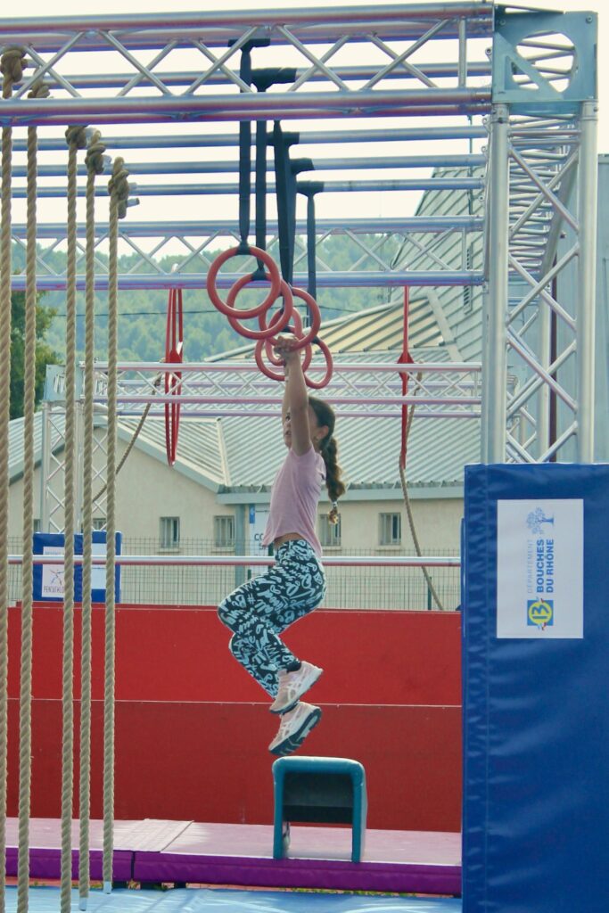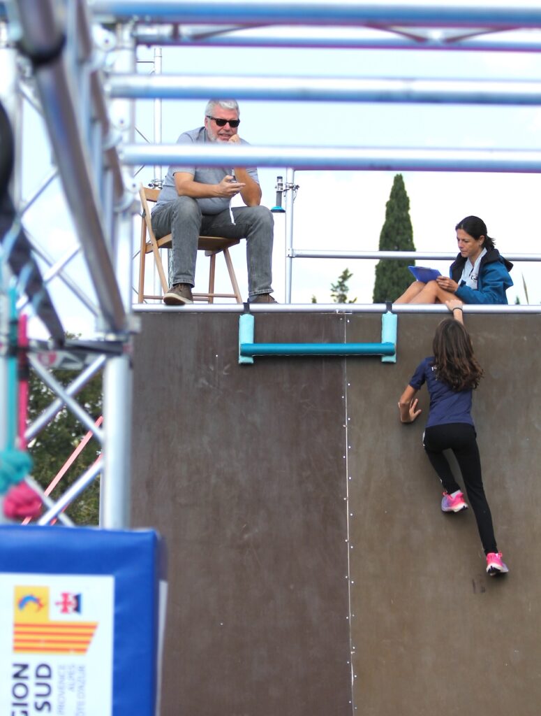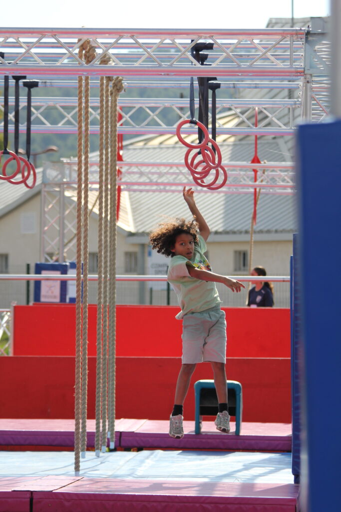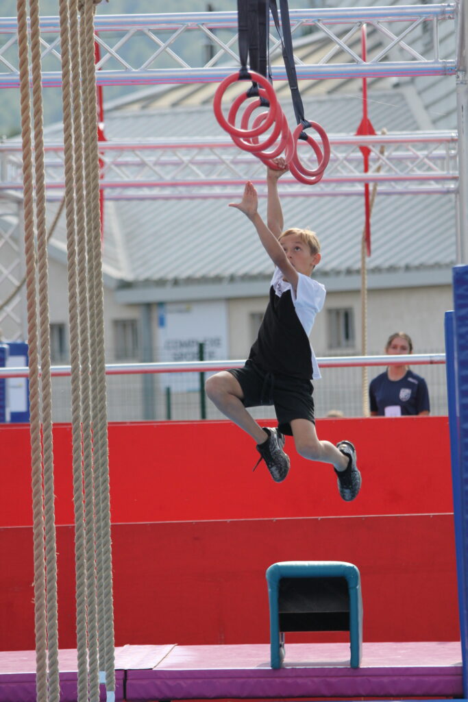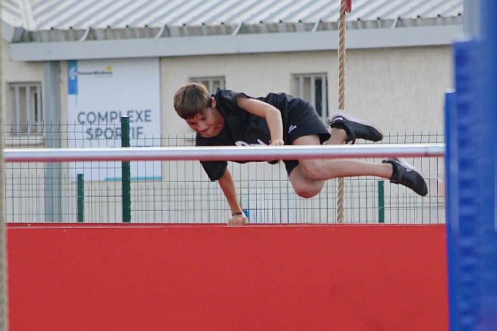 L’épreuve d’obstacles a été l’occasion de tester les différentes adaptations possibles du parcours adultes, afin que les enfants puissent pratiquer sans avoir recours à un second parcours en modèle réduit. L’utilisation de tremplins et le remplacement de la Big Wheel par une corde de Tarzan a fait ses preuves. Toutefois, nous pensons qu’il faut aussi des tremplins de 15cm pour les U15, car il est impossible d’adapter la hauteur de la structure « pour que chaque participant puisse accéder à l’obstacle », comme le prévoit le règlement, au cours de la compétition.